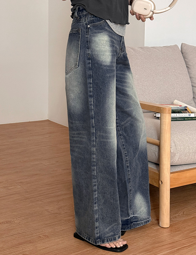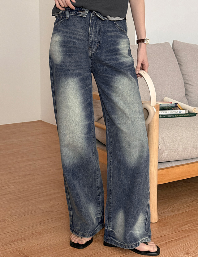[4XL까지] 폴드 獨特 寬 牛仔 褲 87553