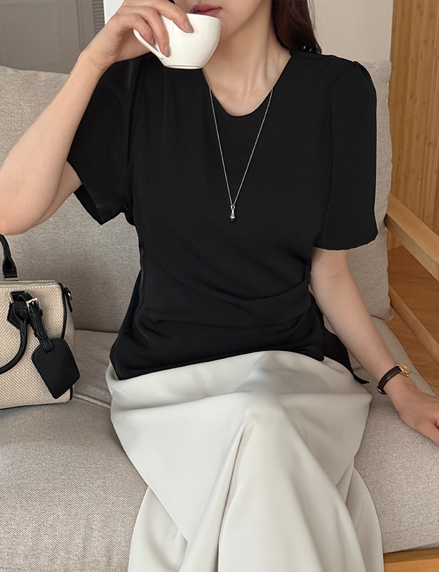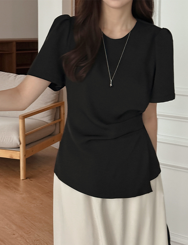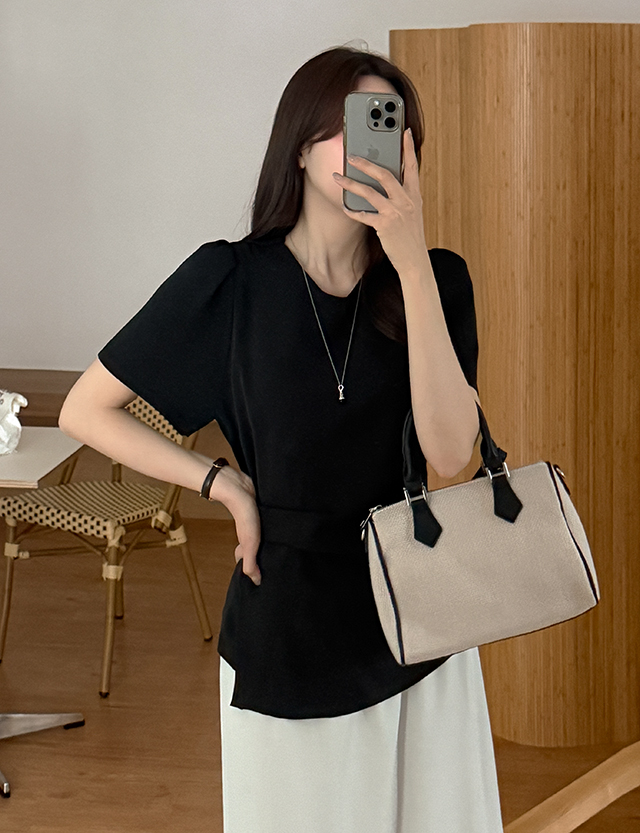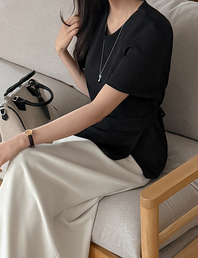 무아드 綁帶 圓領 短袖 襯衫 87598