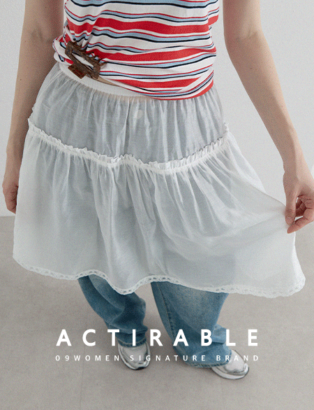 버터플 鬆緊腰 分層 미디 裙 87713