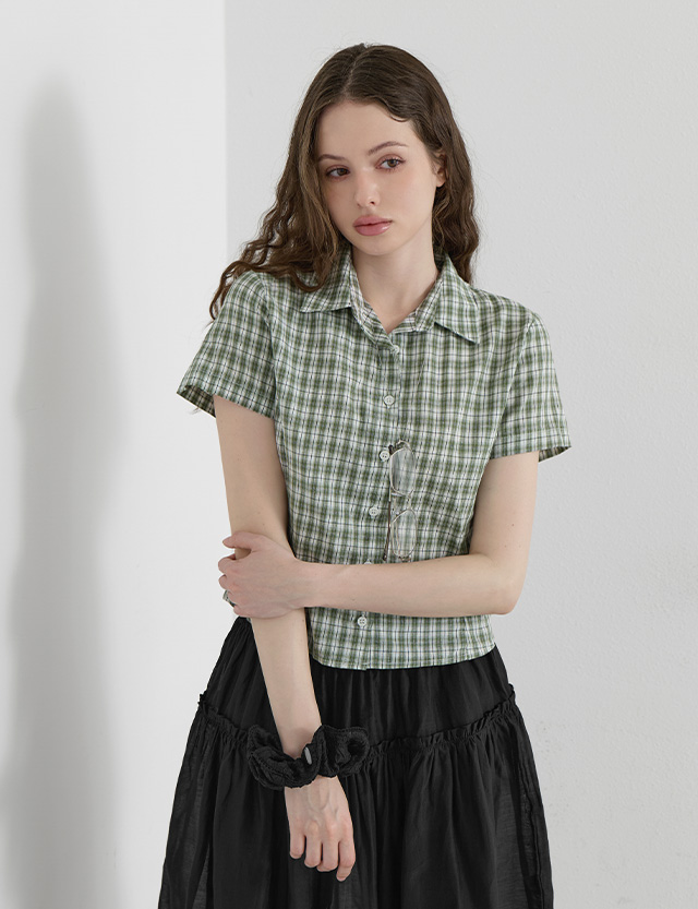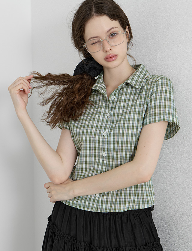 리드니 格紋 線條 短款 短袖 襯衫 87714