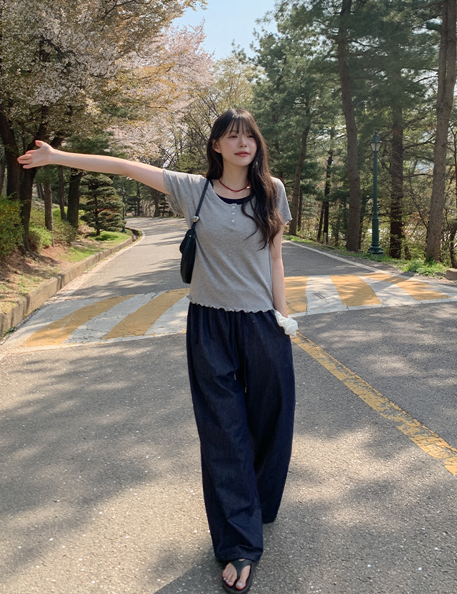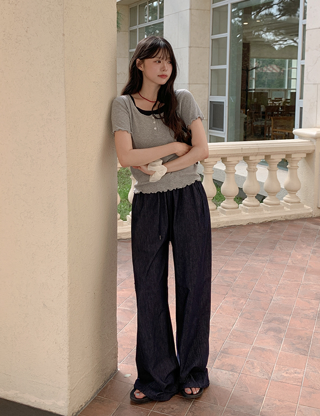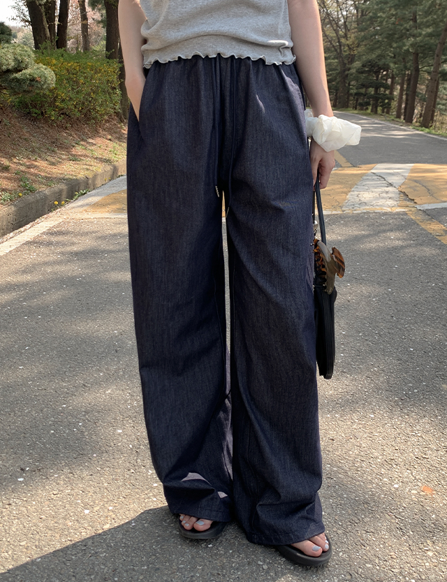 [3가지기장] 엔디아 鬆緊腰 寬 데님라이크 褲 87660