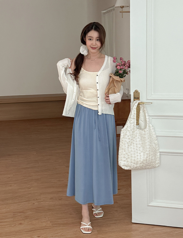 [特價20%] 찰랑쿨 鬆緊腰 波浪群/喇叭裙 長裙 75184