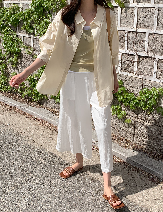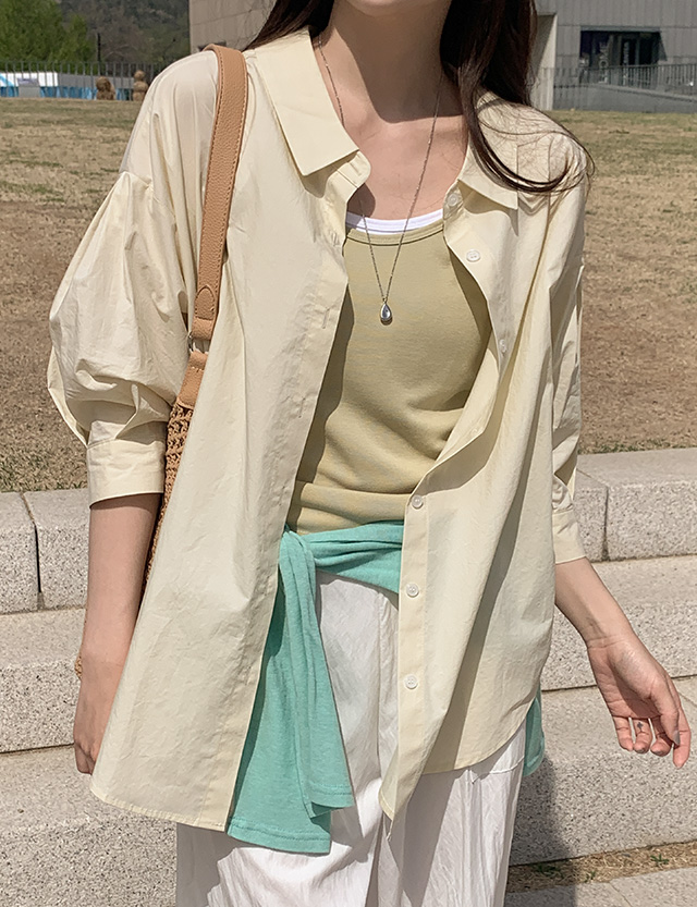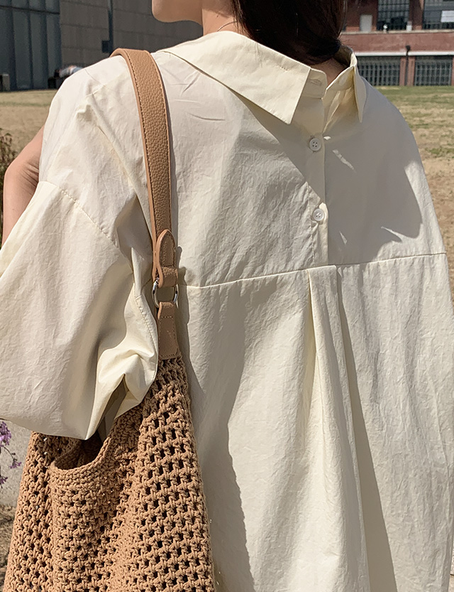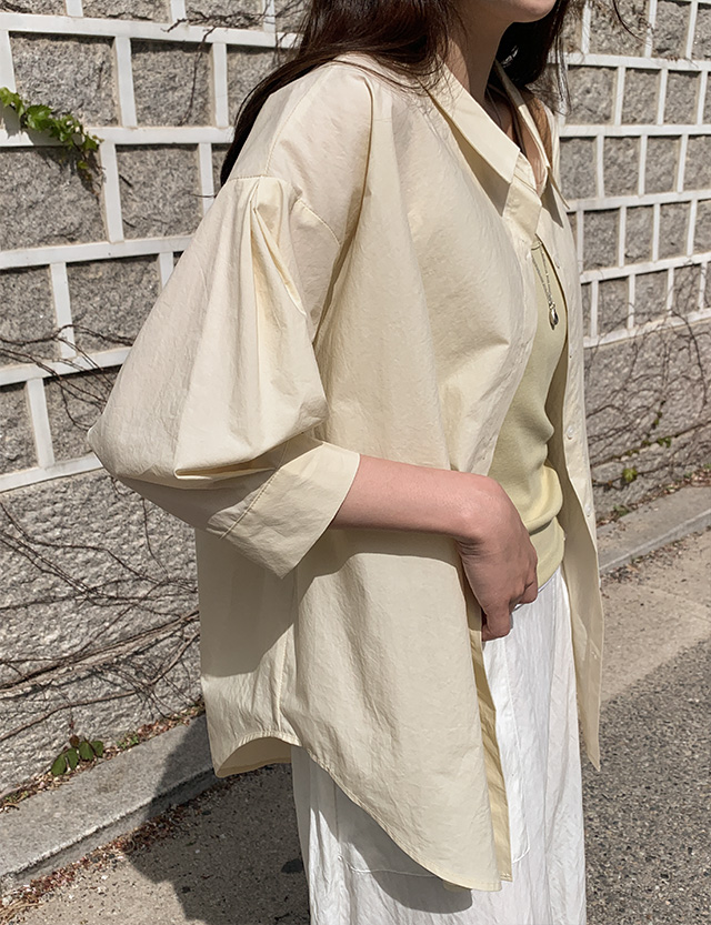 보르밍 寬鬆 뒷버튼 七分 袖口 打摺 襯衫 87738