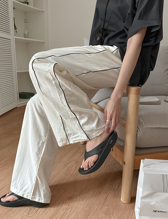 엘론 寬 사선절개 鬆緊腰 褲 87773
