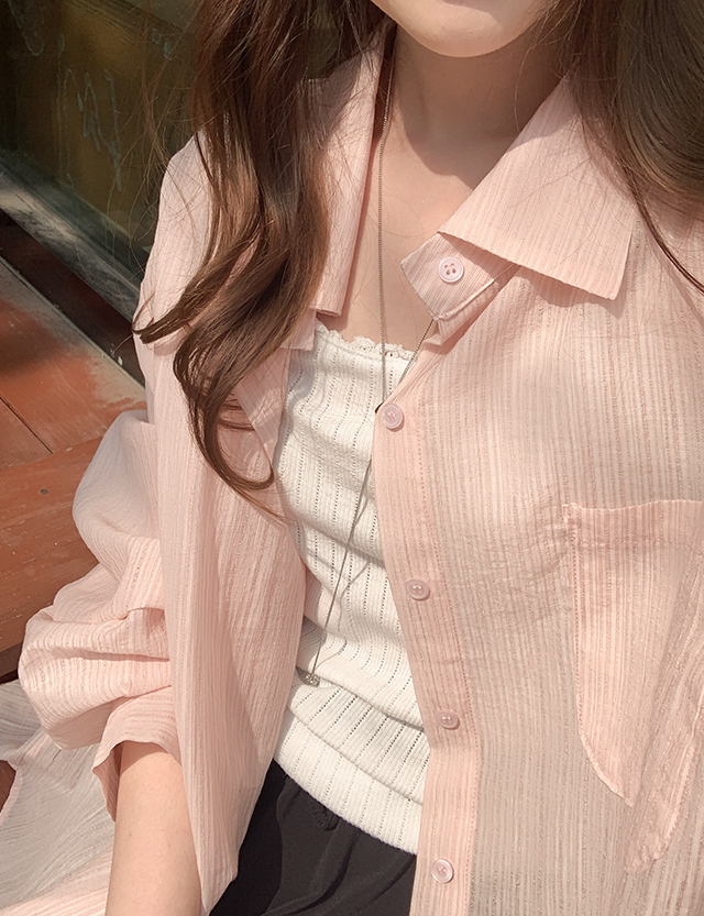 엘츄 寬鬆 스프링 夏季款 條紋 襯衫 87317