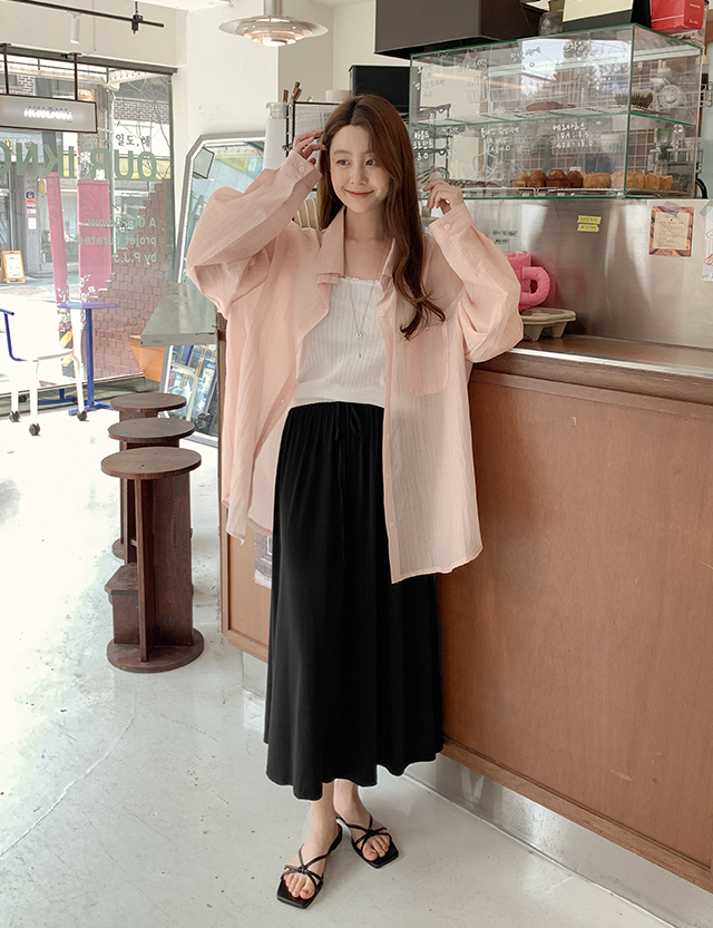 [特價20%] 찰랑쿨 鬆緊腰 波浪群/喇叭裙 長裙 75184