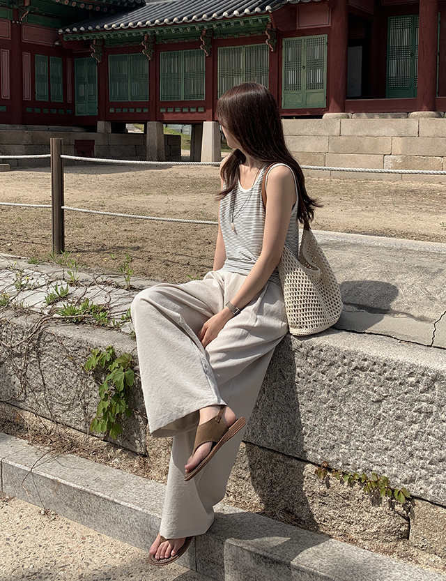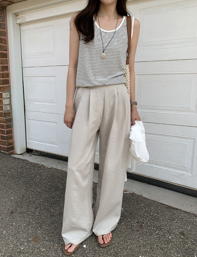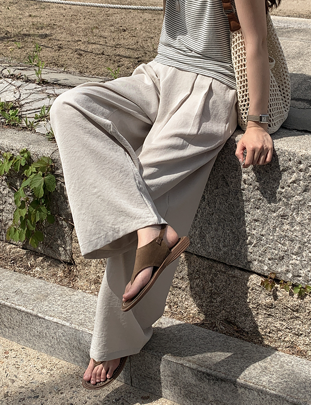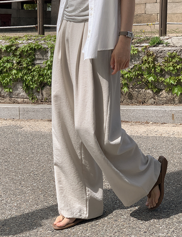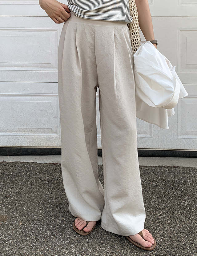 프루아 鬆緊腰 寬 打摺 棉麻 休閒長褲 87729