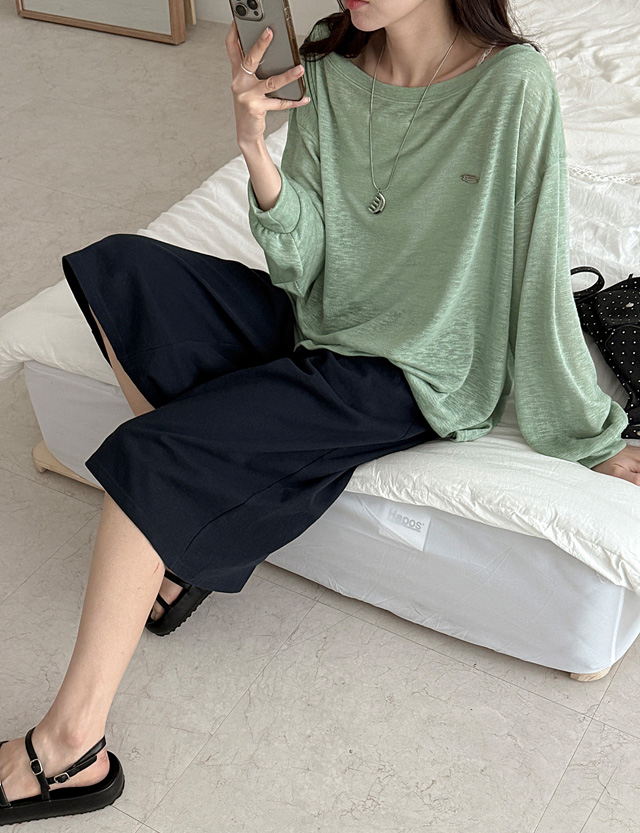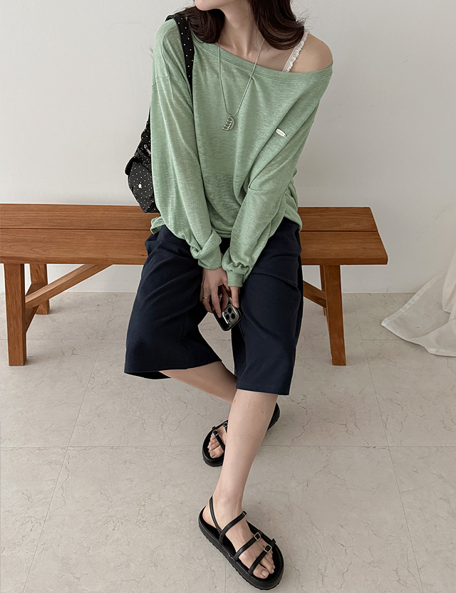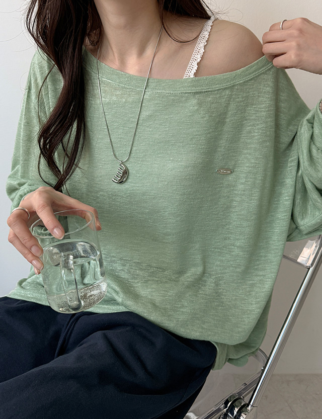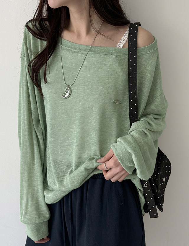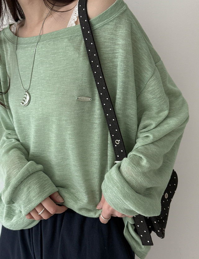 여리쉐입 보트넥 실버참 長袖 針織 T恤 87566